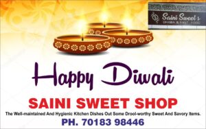 सैनी स्वीट शाॅप की और से दीपावली की हार्दिक शुभकामनाएं…. स्वादिष्ट भोजन मिठाईयों के लिए एकमात्र विकल्प….