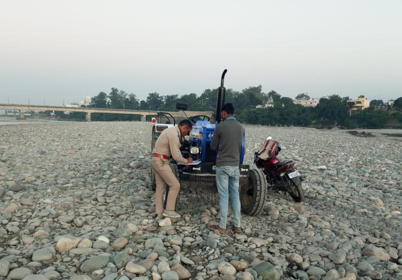 वही, पीछा करने पर एक ट्रैक्टर नदी के पर उत्तराखंड में भागने में सफल रहा जबकि एक ट्रैक्टर को चालक सहित दबोचा गया।