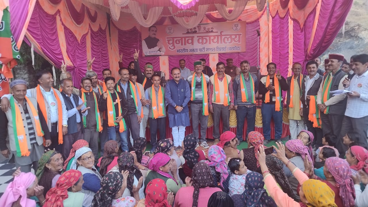 शिलाई विधानसभा क्षेत्र के दुगाना पंचायत में बलदेव तोमर ने चुनावी जनसभा की गई। कार्यक्रम के दौरान कांग्रेस के गढ़ में भाजपा ने सेंधमारी की है। दुगाना पंचायत के उपप्रधान सहित 20 परिवारों ने कांग्रेस पार्टी छोड़कर भाजपा का दामन थामा है। बलदेव तोमर ने कार्यकर्ताओं का भाजपा परिवार में शामिल होने पर स्वागत किया।