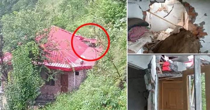 मिली जानकारी के अनुसार लैंड स्लाइड में एक बड़ी चट्टान खिसक कर मकान की छत पर आ गिरी जिसकारण मकान क्षतिग्रस्त हो गया है।