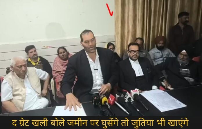 पांवटा साहिब में शुक्रवार दोपहर बाद दिलीप सिंह राणा उर्फ द ग्रेट खली ने अपनी जमीनी विवाद को लेकर प्रेस कॉन्फ्रेंस की और तहसीलदार पर गंभीर आरोप लगाए । इस दौरान उनके साथ कई नए चेहरे थे। उन्होंने भी अपने-अपने जमीनी विवादों को सामने रखा। दिलीप सिंह राणा ऑफ़ द ग्रेट खली ने आरोप लगाते हुए कहा कि पांवटा साहिब के तहसीलदार भूमि माफिया से मिलकर लोगों को नुकसान पहुंचा रहे हैं। इस तरह से पोंटा साहिब और हिमाचल प्रदेश की तरक्की नहीं हो पाएगी। इस दौरान जब एक पत्रकार ने उनसे पूछा कि आप पर भी आरोप लगे हैं कि आपने रातों-रात जमीन पर कब्जा लेने के लिए पंजाब से गुंडे बुलाए थे तो इस पर खली तहश में आ गए और उन्होंने भरी प्रेस वार्ता में कहा कि अगर कोई घर में घुसेगा तो उसको जूते भी मारेंगे और खातिरदारी भी करेंगे।