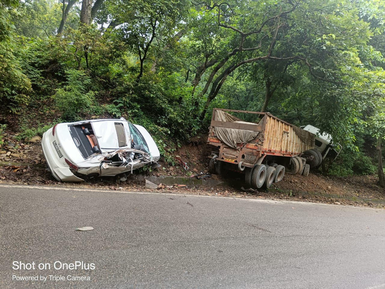 सूचना मिलते ही मौके पर पुलिस पहुंची तो लालढांग के पास एक ट्राला नम्बर RJ07GC-7473 व गाडी नम्बर HR71G 8008 सडक के किनारे क्षतिग्रस्त हालात मे पाए गए।