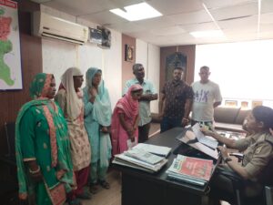 आईपीएस अदिति सिंह से मिलते ग्रामीण, शिकायत सौंपते हुए