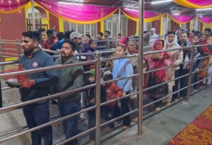 सुबह से श्रद्धालुओं माता के दर्शन करने हेतु लाइनों में लगे हुए वहीं श्रद्धालुओं ने मंदिर में माता के जयकारे लगाए। माता के दर्शन हेतु हरियाणा से भी हजारों की संख्या में श्रद्धालु पहुंचे।