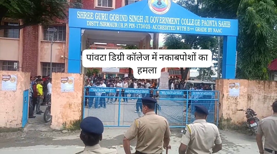 पांवटा साहिब के गुरु गोविंद सिंह डिग्री कॉलेज में अचानक दो नकाबपोश घुस आए और उन्होंने कथित धारदार हथियार और डंडों से कुछ छात्रों पर हमला कर दिया।