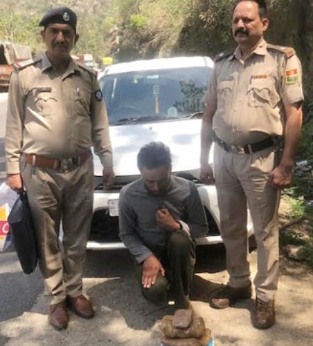 शक के आधार पर कार की तलाशी लेने पर व्यक्ति से 1 किलो 986 ग्राम चरस बरामद की गई। पुलिस ने व्यक्ति से चरस को कब्जे में ले लिया।