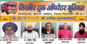 सिरमौर ट्रक आपरेटर यूनियन की ओर से आप सभी को हार्दिक शुभकामनाएं, दीपावली के शुभ अवसर पर आप सभी स्वस्थ रहें सुरक्षित रहें ऐसी हम कामना करते हैं।
