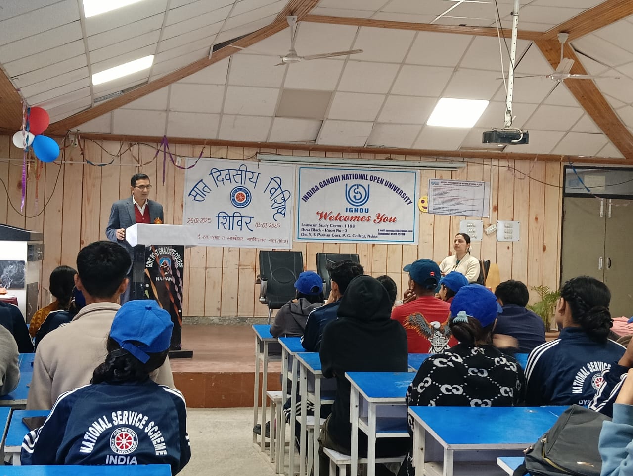 दिन की शुरुआत इग्नू नाहन अध्ययन केंद्र के समन्वयक प्रो. बी.आर. ठाकुर के व्याख्यान से हुई, जिसमें उन्होंने “इग्नू द्वारा डिजिटल लर्निंग और दूरस्थ शिक्षा” विषय पर विस्तार से जानकारी दी। उन्होंने डिजिटल प्लेटफॉर्म के माध्यम से उच्च शिक्षा प्राप्त करने के लाभों और इग्नू द्वारा दी जाने वाली विभिन्न सुविधाओं पर प्रकाश डाला। इसके बाद जिला कल्याण अधिकारी, सिरमौर श्री विवेक अरोड़ा ने “सामाजिक कल्याण के लिए डिजिटल तकनीक का उपयोग” विषय पर व्याख्यान दिया, जिसमें उन्होंने विभिन्न सरकारी योजनाओं जैसे वृद्धावस्था पेंशन, छात्रवृत्ति, विधवा सहायता, दिव्यांगजन लाभ योजनाओं और अन्य सामाजिक सुरक्षा योजनाओं की जानकारी दी तथा डिजिटल माध्यम से उनके आवेदन व लाभ प्राप्त करने की प्रक्रिया समझाई। दोपहर बाद स्वयंसेवकों ने बनोग स्थित शिव मंदिर में सफाई अभियान चलाया और मंदिर परिसर को स्वच्छ बनाने में योगदान दिया। शाम को महाविद्यालय के पूर्व छात्र और वर्तमान में भारतीय सेना के जवान श्री निखिल ने सेना में भर्ती की तैयारी और अग्निवीर योजना पर एक संवादात्मक सत्र लिया, जिसमें उन्होंने चयन प्रक्रिया, शारीरिक व मानसिक तैयारी, परीक्षा पैटर्न और अनुशासन के महत्व पर विस्तृत चर्चा की। इस सत्र ने युवाओं को सेना में करियर बनाने के लिए प्रेरित किया। पूरे दिन की गतिविधियाँ एनएसएस कार्यक्रम अधिकारियों डॉ. पंकज चांडक और प्रो. लक्षिता ठाकुर के मार्गदर्शन में सफलतापूर्वक संपन्न हुईं।
