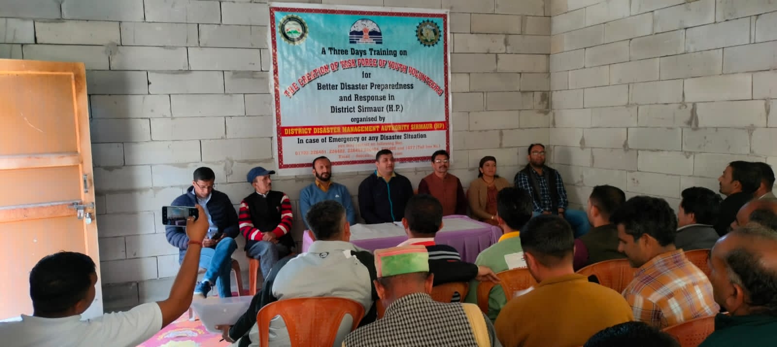 उपायुक्त सिरमौर, सुमित खिमटा (भा. प्र. से.) के दिशा निर्देशों अनुसार जिला आपदा प्रबंधन प्राधिकरण, सिरमौर द्वारा तीन दिवसीय आपदा प्रबंधन विषय पर प्रशिक्षण कार्यक्रम विकासखंड, शिलाई के अंतर्गत (ग्राम पंचायत सभागार हॉल रास्त स्थित रोनहाट) में आयोजित किया जा रहा है। इस कार्यक्रम के मुख्य अतिथि, नायब-तहसीलदार रोनहाट, मोहनलाल लालटा ने बताया कि इस तीन दिवसीय प्रशिक्षण कार्यक्रम में शिलाई विकास खंड की 12 पंचायतों (डाहर, जरवा जुनैली, पनोग, अजरौली, लानी बोराड़, कोटि बौंच, रास्त, शखौली, नाया पंजोड, हल्लॉहा, नैनीधार, लोज़ा मानल) से प्रत्येक पंचायत से 10-10 युवा स्वयंसेवक इस प्रशिक्षण कार्यक्रम में भाग लेने जा रहे हैं। उन्होंने बताया कि इस प्रशिक्षण कार्यक्रम में लगभग 120 युवा स्वयंसेवक प्रशिक्षित होंगे।