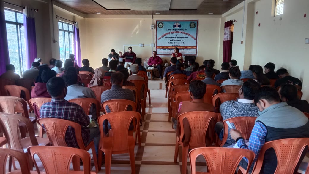 उपायुक्त सिरमौर, सुमित खिमटा (भा. प्र. से.) के दिशा निर्देशों अनुसार जिला आपदा प्रबंधन प्राधिकरण, सिरमौर द्वारा तीन दिवसीय आपदा प्रबंधन विषय पर प्रशिक्षण कार्यक्रम विकासखंड, शिलाई (पंचायत ग्राम सभा बैठक हाल) में आयोजित किया जा रहा है।