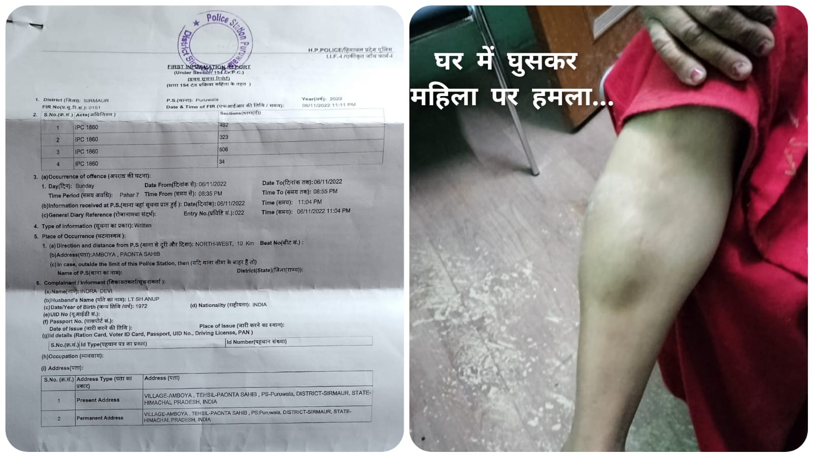 पांवटा साहिब के अंबोया में एक महिला पर घर में घुसकर मारपीट करने के आरोप सामने आए हैं। जिसके बाद पुरूवाला पुलिस द्वारा तीन नामजद आरोपियों पर मामले दर्ज किए गए हैं।