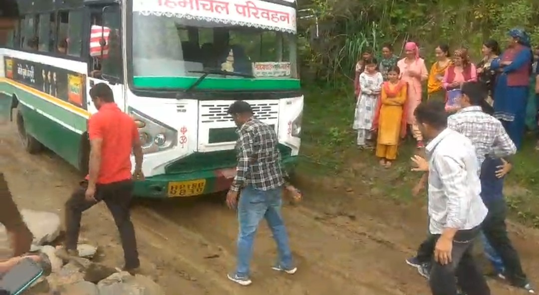 सिरमौर जिला के उपमंडल मुख्यालय संगड़ाह से अरट व शिवपुर होकर नौहराधार जाने वाली सड़क पर मौजूद दलदल में फंसी HRTC की लोदियाघाटी-नाहन बस को Driver ने आज सवारियों से धक्का लगवाकर बड़ी मुश्किल से निकला।