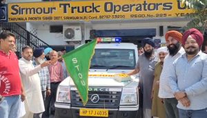 इस मौके पर जसमेर सिंह भूरा प्रधान सिरमौर ट्रक यूनियन और शमशेर काश्मी द्वारा झंडा दिखाकर एंबुलेंस को रवाना किया। इस पुनीत कार्य से आपरेटर्स ने उक्त सेवाओं के लिए हर्ष व्यक्त किया।