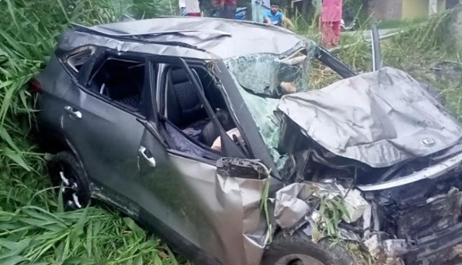 वही, स्थानीय लोगों ने मौके पर पहुंच कर कार को सीधा किया।हादसे में सलोह निवासी राजन जसवाल व अमल की मौके पर ही मौत हो गई थी। जबकि हादसे में घायल कार चालक विशाल चौधरी निवासी मजारा, सिमरन जीत सिंह निवासी हाजीपुर तहसील नंगल व अनूप सिंह निवासी झलेड़ा को ऊनाअस्पताल लाया गया, जहां उपचार के दौरान तीनों की मौत हो गई।