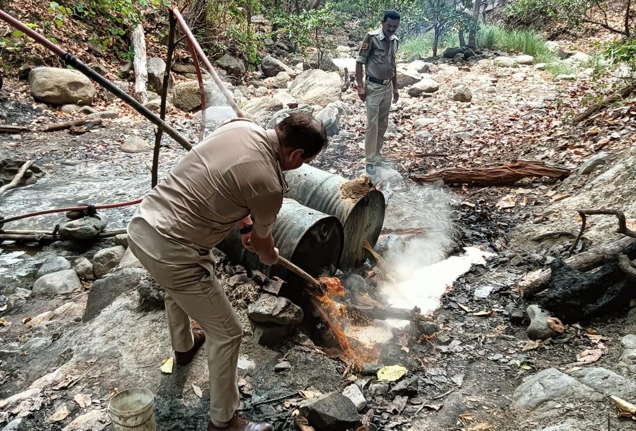 जिला सिरमौर व SDPO साहब पांवटा साहिब के दिशानिर्देश पर SI/SHO व मुलाजमानो थाना को हमराह लेकर गांव खारा के जगंलो मे करीब 5 किलो मीटर अन्दर जाकर खारा के नाला मे बनी 5 अदद नाजायब शराब की भट्टियां जिनमे से 02 भट्टिया चलती हुई हालत मे पाई गई। मौका पर आस पास कोई भी व्यकित उपस्थित न पाया गया। तथा भट्टियों के आस पास करीब 28 ड्रमों मे रखी हुई लाहन पाई गई तथा 2 बंटे एल्मुनियम के जो ताजी निकली कसीदशुदा शराब से भरे हुए पाये गये। मौका पर ड्रोम मे करीब 12000 लीटर लाहन रखी हुई व एल्युमिनिय के 2 बंटो मे रखी करीब 40 लीटर नाजायज कसीशुदा ताजी शराब को नष्ट किया गया तथा ड्रमो को कुल्हाड़ी से फाड़ कर नष्ट किया गया तथा आस पास शराब को तैयार करने के लिए उपलब्ध साधनो को भी नष्ट किया गया।