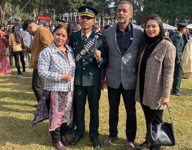 लेफ्टिनेंट अमन वशिष्ठ के पिता राजेश शर्मा और माता प्रीति शर्मा और बहन गुन्निका शर्मा ने देहरादून में पासिंग परेड के बाद अमन वशिष्ट के कंधों पर स्टार सजाए और बेहद खुशी के पलों को हमारे साथ साझा किया। बड़े फक्र की बात है कि इस परिवार ने अपने इकलौते बेटे को देश की सेवा करने के लिए भारतीय सेना में भेजा है। अमन की बड़ी बहन जर्मनी में साइंटिस्ट है और अपने भाई की पासिंग परेड देखने के लिए विशेष तौर पर भारत लौटी थी।
