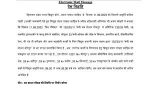 पोंटा साहिब के गोंदपुर में 132/33 केवी सब स्टेशन बंद रहने के कारण पांवटा साहिब सतौन शिलाई क्षेत्र में विद्युत आपूर्ति बाधित रहेगी।