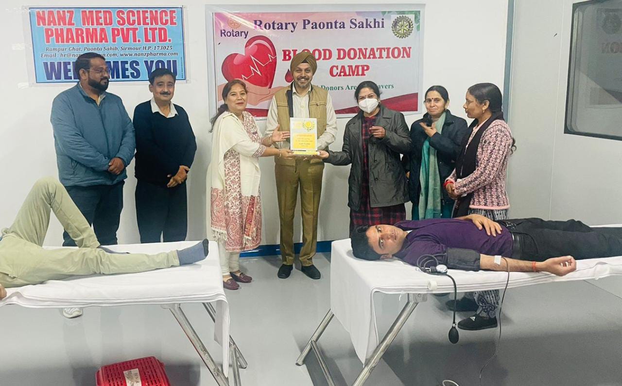 पांवटा साहिब के रामपुरघाट में स्थित नंज मेड साइंस फार्मा में आज दिनाँक 14 फरवरी को रक्तदान शिविर का आयोजन किया गया। कम्पनी के निदेशक मनमीत सिंह मल्होत्रा ने बताया की रोटरी पांवटा सखी के सहयोग से नंज मेड साइंस फार्मा में आई0 ऍम0 ए0 ब्लड बैंक, देहरादून द्वारा रक्तदान शिविर का आयोजन किया गया।