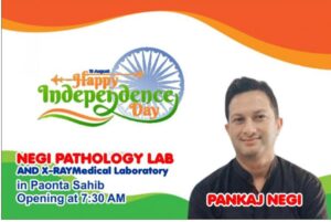 पांवटा साहिब में नेगी लैब विश्वसनीयता की एक नई तहरीर लिख रही है। 77वें स्वतंत्रता दिवस के अवसर पर PANKAJ NEGI, DIRECTOR. NEGI LAB. ने सभी को शुभकामनाएं देते हुए कहा हिमाचल प्रदेश में बरस रही आफत के बीच सभी सुरक्षित रहे ऐसी वह कामना करते हैं।
