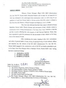 ABCL कम्पनी को 707 निर्माण कार्य के चलते कुछ राहत दी गई है जिसमें इस कम्पनी के ट्रक सुबह 10 बजे से 1:30 दोपहर 3:30 से शाम 5 बजे तक और शाम 6 बजे से 7 बजे तक सिर्फ कम्पनी के ट्रक चल सकते हैं लेकिन कम्पनी लगातार नियमों को तोड़ते हुए बच्चों की जान जोखिम में डाल रही है सुबह जिस वक्त बच्चों के स्कूल जाने का टाइम होता है उस वक्त भी ए बी सी एल कंपनी के ट्रक इस मार्ग पर चलते दिखाई देते हैं दोपहर के 3:30 बजे से पहले भी डंपर चलते दिखाई देते हैं जोकि साफ-साफ प्रशासनिक आदेशों के साथ आम नागरिक के जीवन से भी खिलवाड़ है।