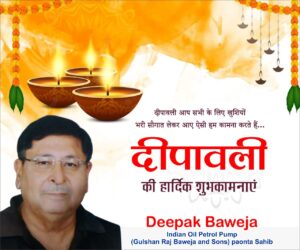 दीपावली आप सभी के जीवन में खुशियां लेकर आए आपका भविष्य सुरक्षित हो आप स्वस्थ रहें ऐसी हम प्रभु से कामना करते हैं…. DEEPAK BAWEJA… BHAVIJA FEELING STATION PAVTA SAHIB