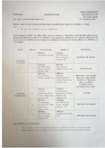 राज्यपाल हिमाचल प्रदेश शिव प्रताप शुक्ल 26 मार्च, 2025 को प्रातः 10 बजे क्षेत्रीय बागवानी अनुसंधान एवं प्रशिक्षण केन्द्र धौलाकुंआ जिला सिरमौर में किसान मेला एवं नशा उन्मूलन जागरूकता शिविर में मुख्य अतिथि के रूप में शिरकत करेंगे।