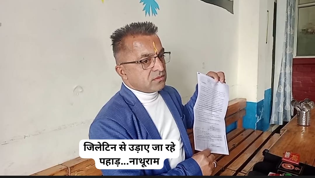 हिमाचल प्रदेश के नेशनल हाईवे 707 की कटिंग के लिए जिलाधिकारी द्वारा जिलाटिन से पहाड़ों को उड़ाने के आदेश पूरी तरह से गैर कानूनी है । जिसको लेकर नाथूराम चौहान ने प्रेस वार्ता करते हुए इसकी जानकारी दी।