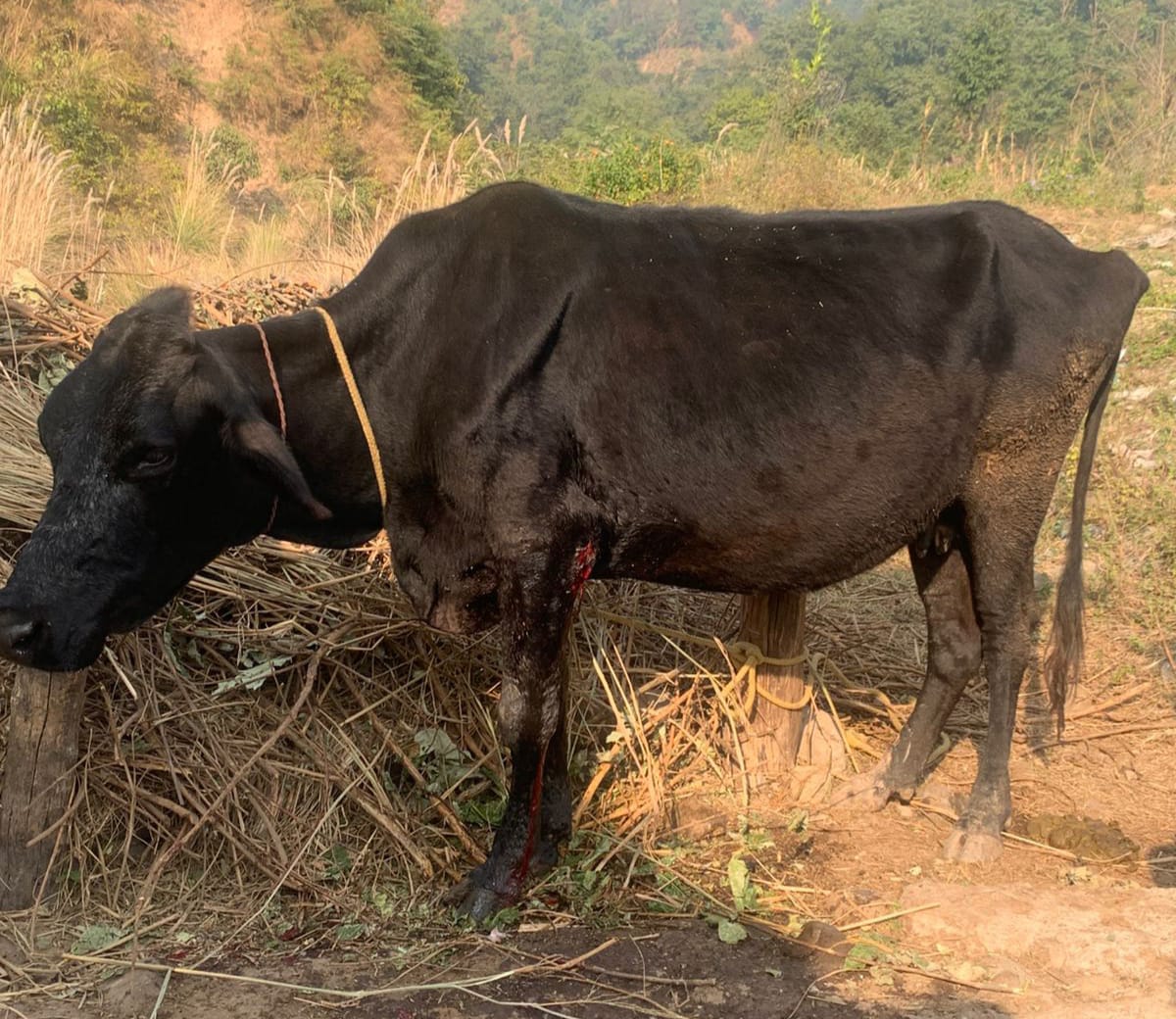 तेंदुए ने किया गाय पर हमला… बुरी तरह से घायल…