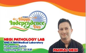 पांवटा साहिब की विश्वसनीय नेगी लैब की ओर से प्रदेशवासियों को स्वतंत्रता दिवस की हार्दिक शुभकामनाएं स्वतंत्र भारत में तिरंगा ऐसे ही लहराता रहे हम सब इस को सम्मान देते रहे ऐसी कामना हम सभी मिलकर करें।