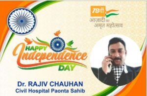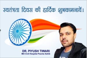 78वीं स्वतंत्रता दिवस पर डॉक्टर पीयूष तिवारी द्वारा हिमाचल और पांवटा वासियों को स्वतंत्रता दिवस पर शुभकामनाएं दी गई ।