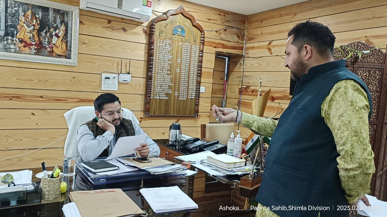 पांवटा साहिब में एसडीएम गुंजीत चीमा को अवैध खनन बिना परमिशन क्रशर चलाई जाने और सरकारी जमीन का दुरुपयोग करने को लेकर शिकायत सौंपी गई है जिसमें एसडीएम पांवटा साहिब ने सख्त कार्रवाई का आश्वासन दिया है।