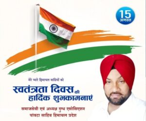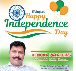 पांवटा साहिब के युवा उद्यमी और रेणुका प्रिंटर्स के संचालक जगदीश तोमर ने प्रदेश और पांवटा साहिब की जनता को स्वतंत्रता दिवस पर शुभकामनाएं दी