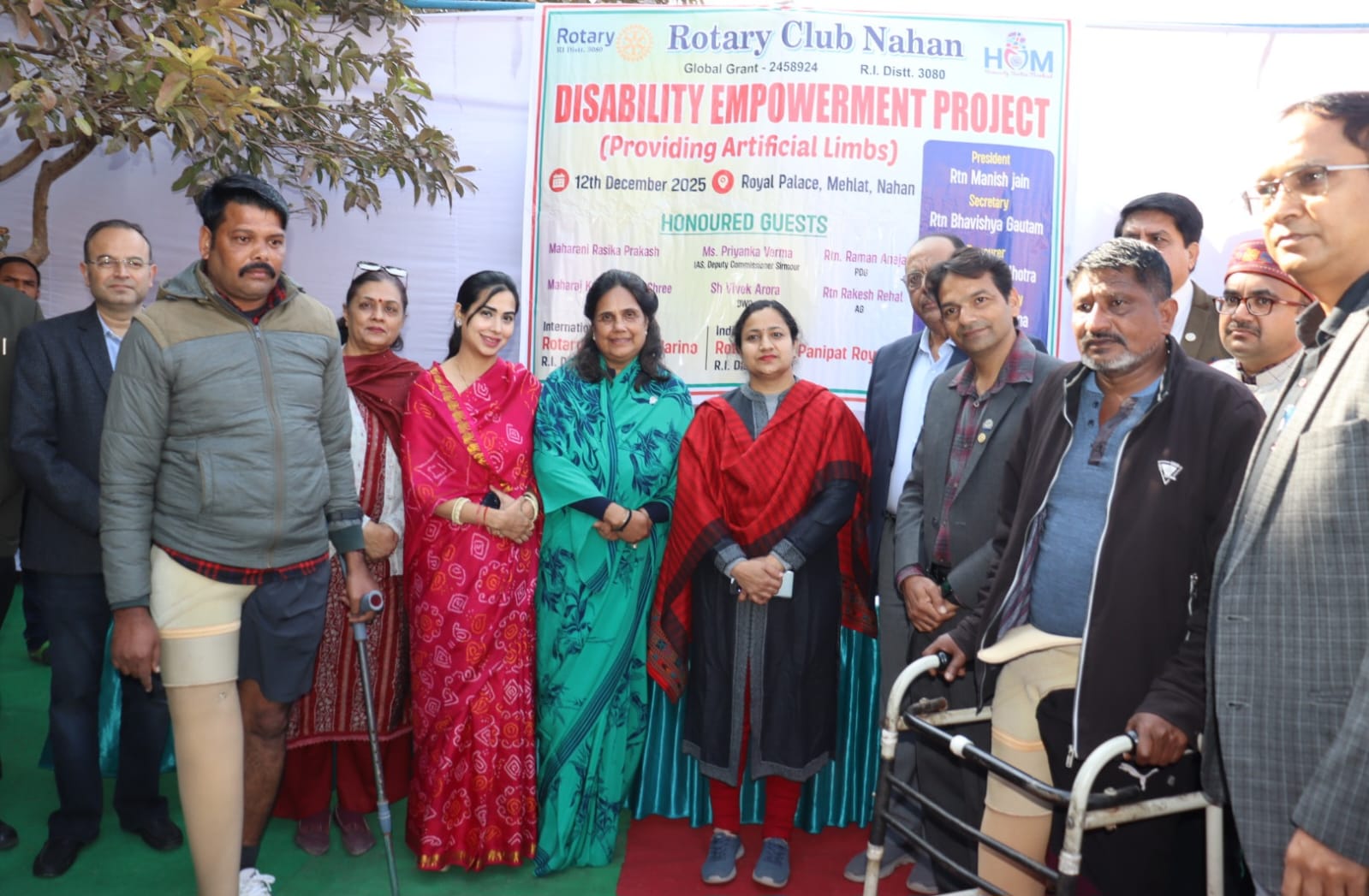 उपायुक्त सिरमौर प्रियंका वर्मा ने आज नाहन में रोटरी क्लब नाहन द्वारा आयोजित कार्यक्रम में 15 दिव्यांग व्यक्तियों को कृत्रिम अंग प्रदान किये। उन्होंने रोटरी क्लब नाहन की इस पहल की सराहना की और कहा कि इस पुनीत कार्य से जरूरतमंद व्यक्तियों को आत्मनिर्भर जीवन जीने का अवसर प्रदान होगा।