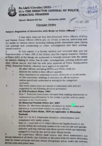 हिमाचल प्रदेश में पुलिस महानिदेशक द्वारा मीडिया ब्रीफिंग पर रोक लगा दी गई है। अब केवल एसपी और आईजी ही हत्या लूटपाट डकैती और अन्य क्राइम पर मीडिया को ब्रीफ कर पाएंगे।