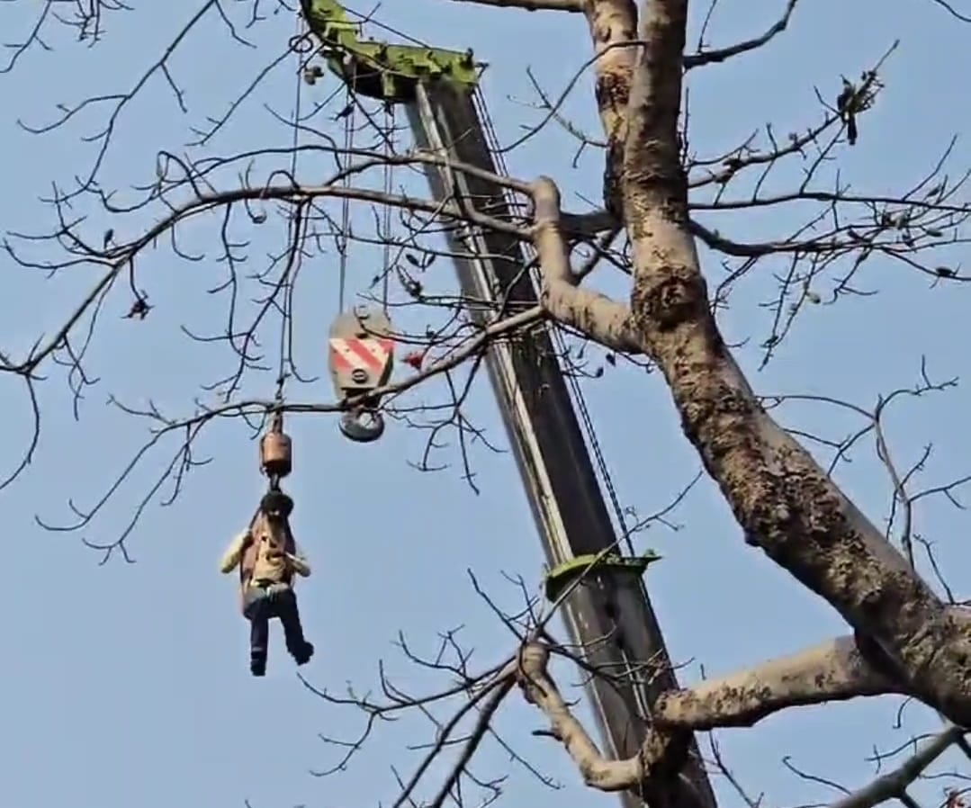 100 फीट ऊपर जान पर खेल कर बचाई पक्षी की जान….Singh is King….देखें विडियो…