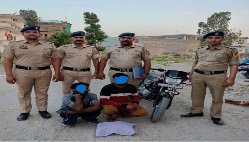 उप-मण्डल पुलिस अधिकारी पाँवटा साहिब की POLICE DETECTION TEAM द्वारा नशा तस्करों के विरुद्ध चलाये गये अभियान के दौरान गुप्त सूचना प्राप्त हुई कि मतरालियों रामपूर घाट में दो व्यक्ति चरस व गाँजा बेचने का काम कर रहे हैं। जिस पर तत्परता से कार्यवाही करते हुए प्राप्त सूचना के आधार पर नशा तस्कर सनी S/O विनोद कुमार व उम्र 32 वर्ष तथा रीतिक S/O काला निवासीगण दोनो निवासी बंगाला बस्ती कुन्जा मतरालियों तहसील पांवटा साहिब, जिला सिरमौर (हि०प्र०) जोकि मोटरसाइकिल न. HP17H-4867 पर जा रहे थे को देवीनगर पाँवटासाहिब में रोक कर चैक किया गया व नियमानुसार तलाशी ली गई। तलाशी के दौरान उक्त व्यक्तियों के कब्जा से 2.066 किलोग्राम गांजा बरामद करने में सफलता प्राप्त की गई है। जिस पर पुलिस थाना पुरुवाला मे ND&PS ACT में अभियोग पंजीकृत करके उपरोक्त दोनों आरोपियों को गिरफ्तार किया गया है। आरोपियों को अदालत में पेश करके अभियोग में अन्य पहलुओं व आरोपियों के साथ जुडे रैकेट का पता करने व उन्हें भी सलाखों के पीछे डालने के लिये पुलिस हिरासत रिमाण्ड हासिल किया जा रहा है।